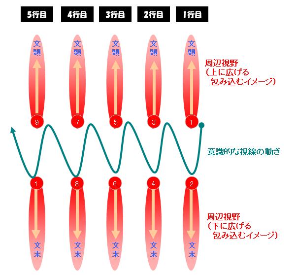⑤3行目の『 文頭 』を周辺視野で捉えて、